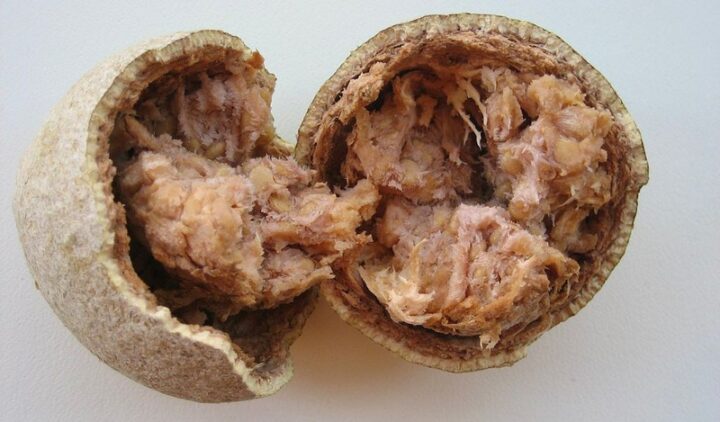 Trái ngược với vẻ ngoài sần sùi, cơm có vị chua ngọt, tươi mát khiến nhiều người yêu thích. Hình dạng quả hơi giống trái bóng nhỏ, vỏ sần sùi màu trắng xám. Thịt quả quách có màu nâu sẫm đặc sệt. Khi quả chín tự rụng mà không cần hái, sau đó dùng vật cứng gõ nhẹ vào vỏ cho vỡ ra. Với những cách ăn dưới đây giúp trái quách phát huy tác dụng và hương vị đặc biệt vốn có.