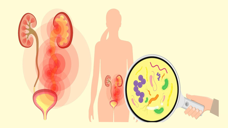 Nhiễm trùng đường tiết niệu xảy ra khi vi khuẩn xâm nhập vào đường tiết niệu qua niệu đạo và sau đó nhân lên bên trong bàng quang. Các triệu chứng của nhiễm trùng đường tiểu thường gặp như đau, nóng rát khi tiểu, kích thích đi tiểu liên tục, nước tiểu đục, có máu và có mùi mạnh.